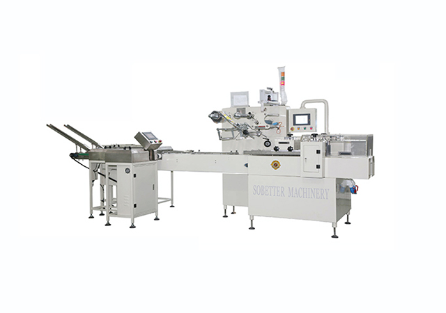 實現(xiàn)餅干聯(lián)線自動整理,并根據(jù)所設(shè)置的餅干片數(shù)完成自動點數(shù)、裝托盒或無托盒包裝。